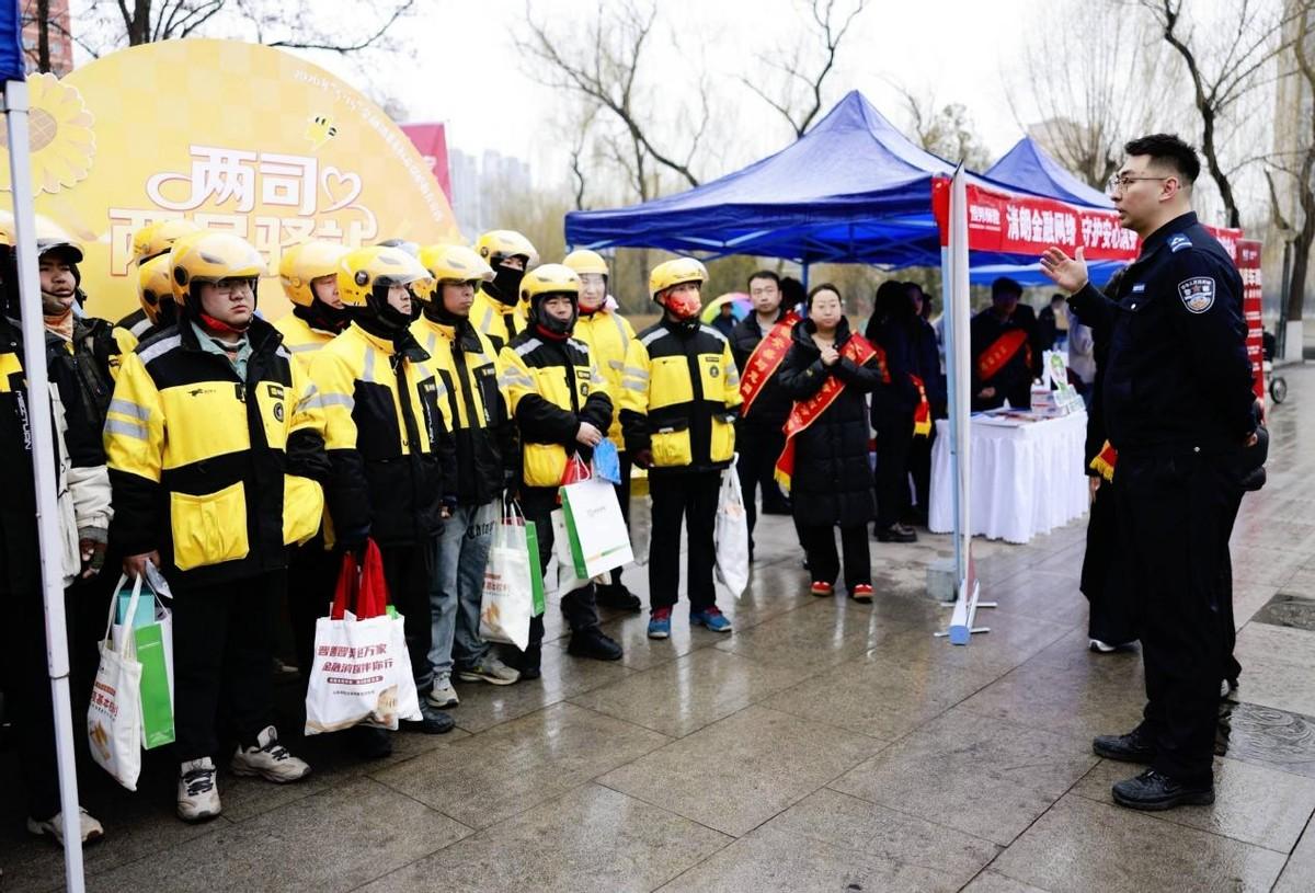针对司机、外卖员等“两司两员”群体,活动特设专属驿站,发放印有风险提示的手机支架、车贴等实用物资,通过展板讲解、反诈民警现场宣讲等形式,精准普及新就业群体常见的网络金融侵害案例与防范技巧。